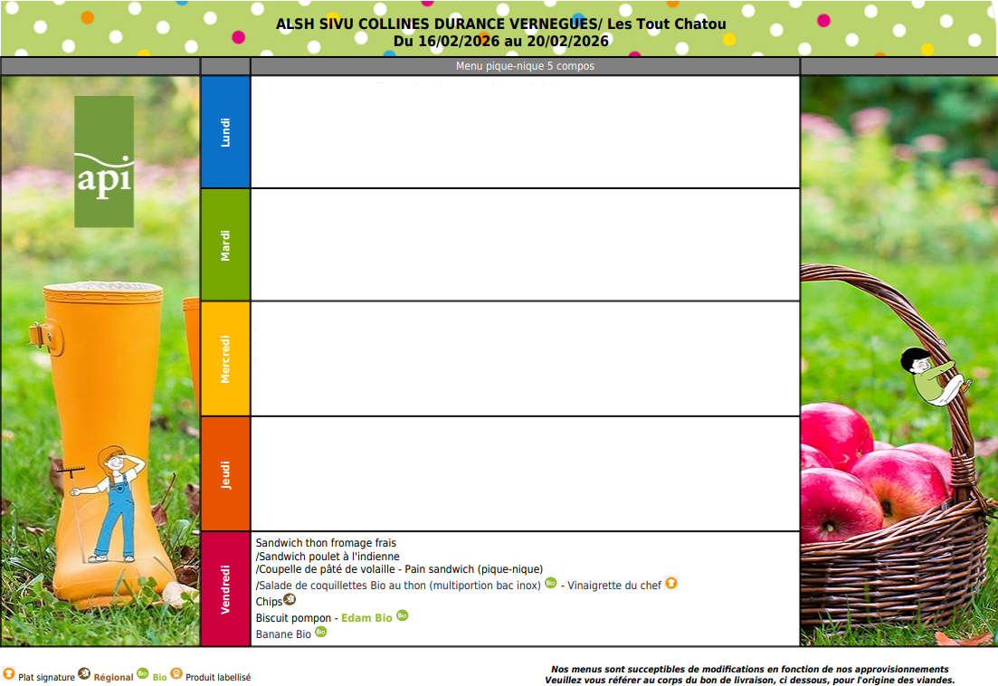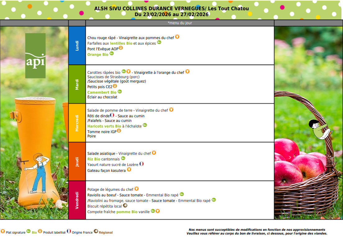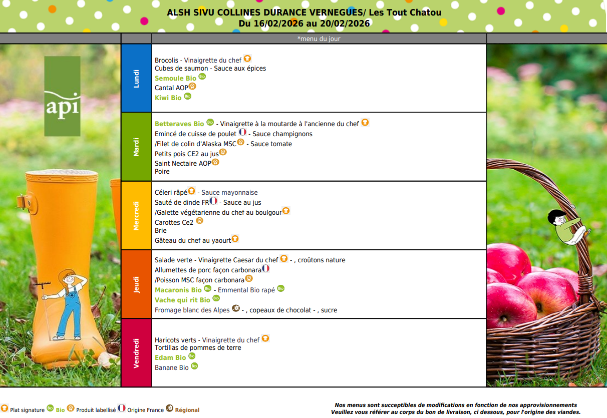 MENUS DU LUNDI 16 AU VENDREDI 27 FEVRIER