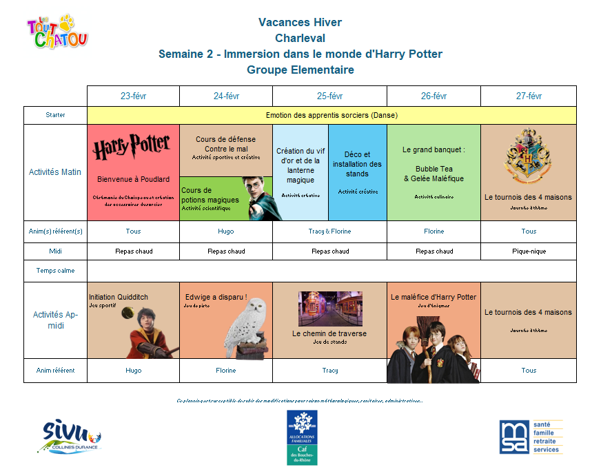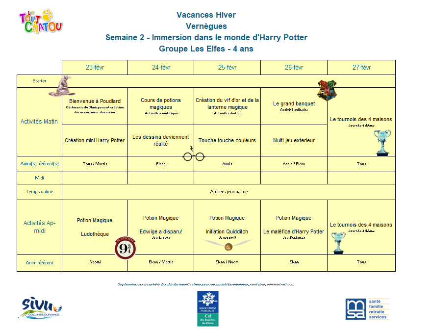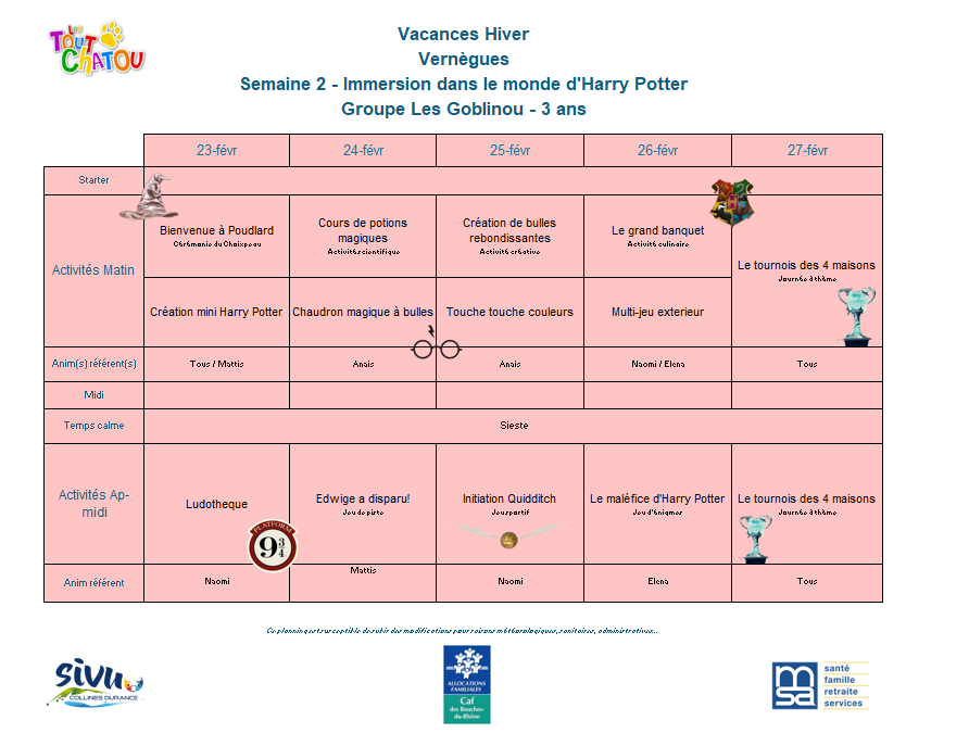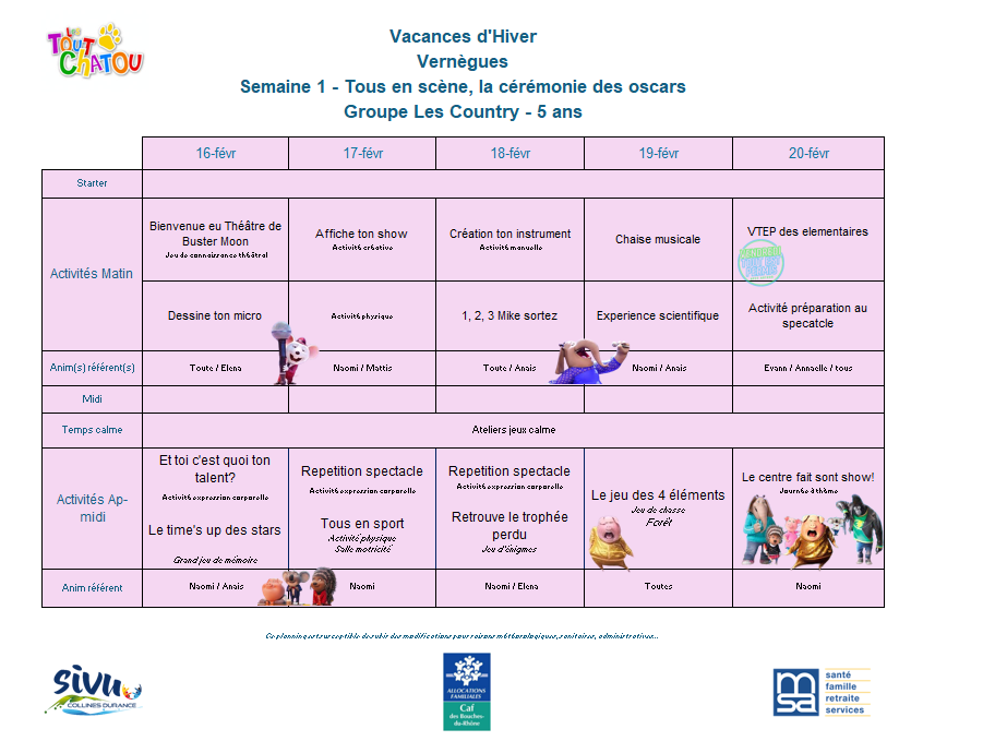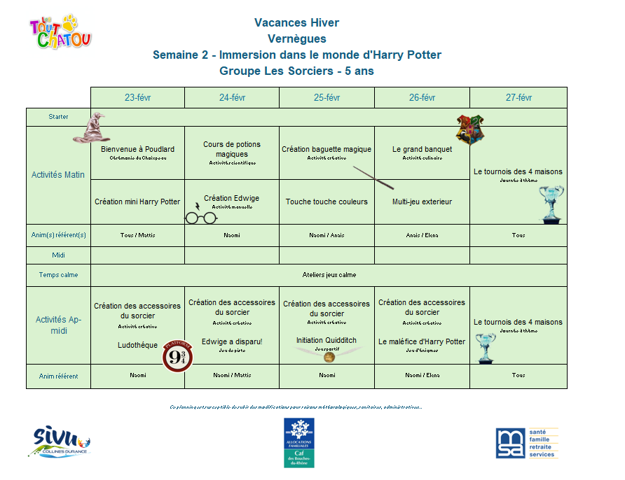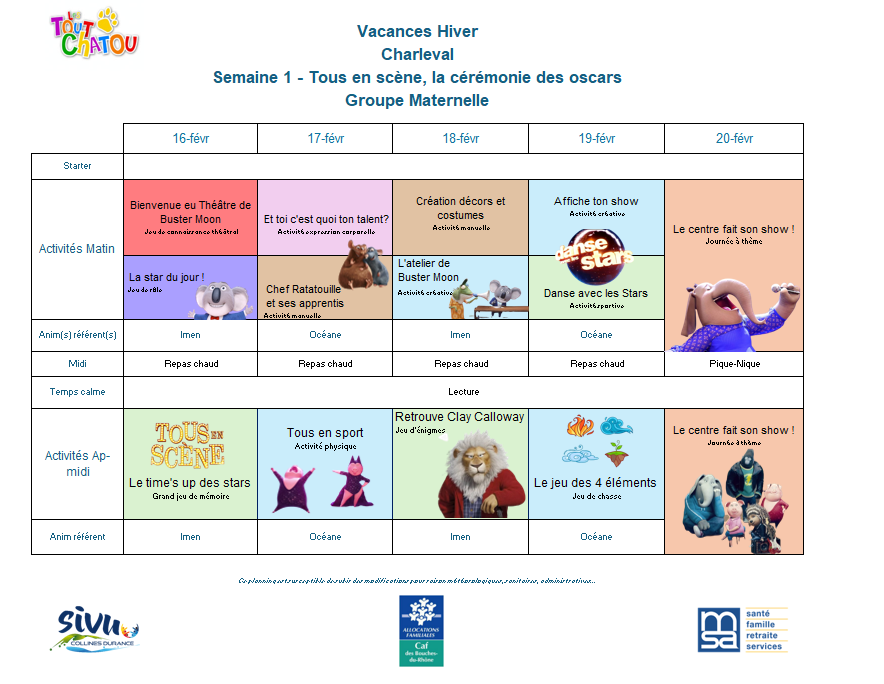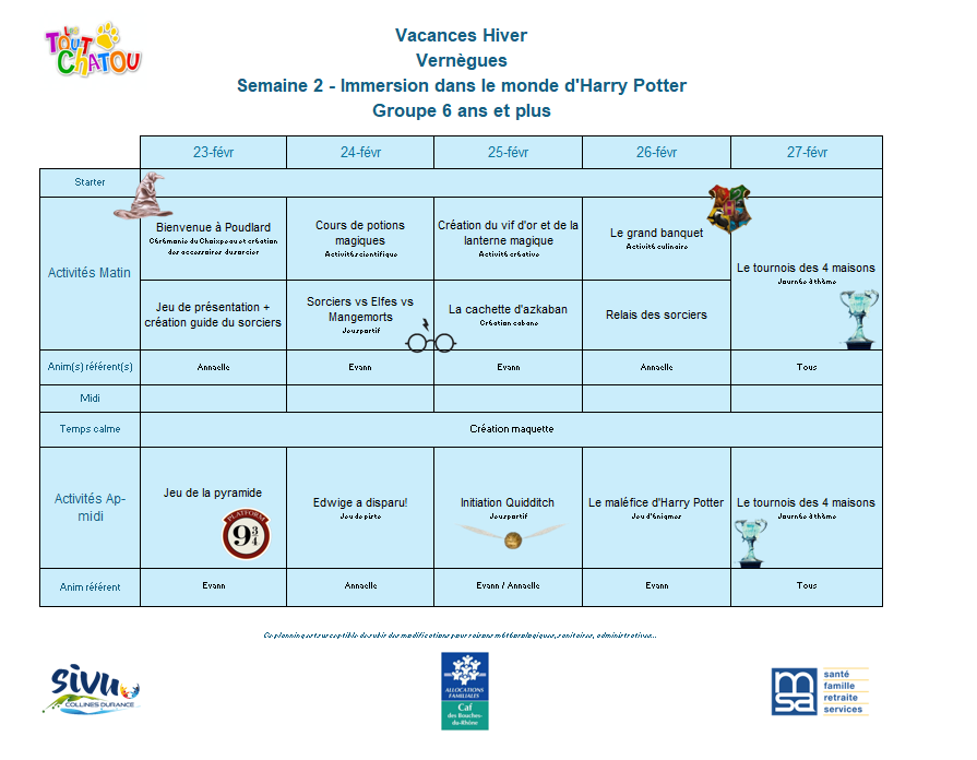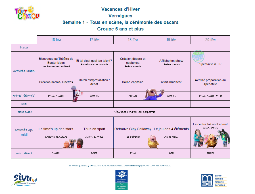Plannings des vacances d’hiver 2026