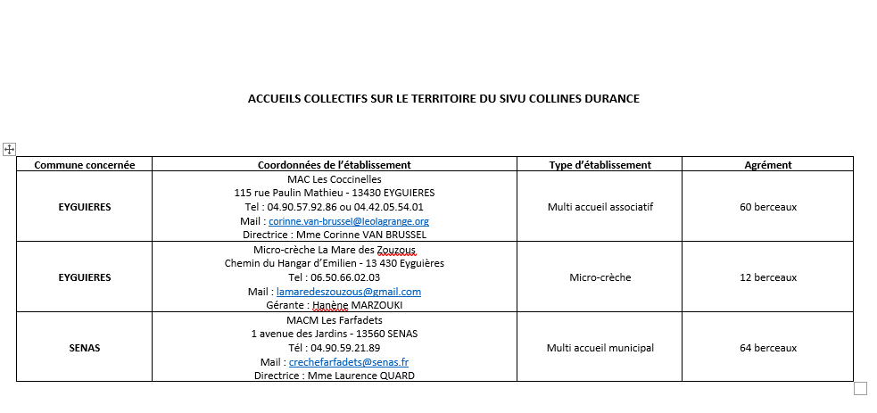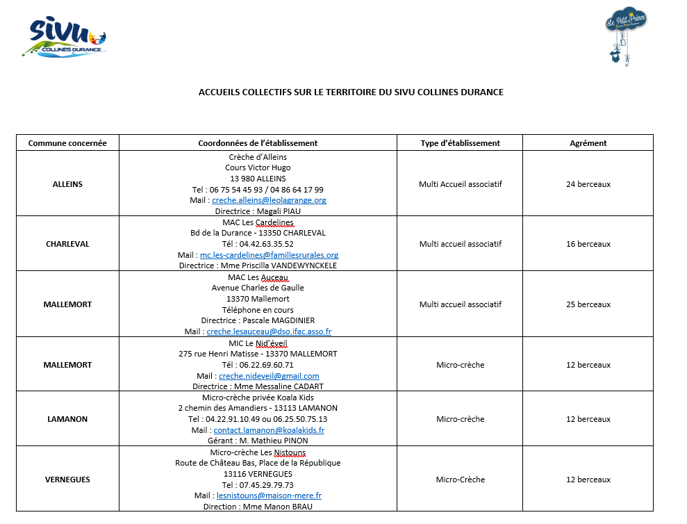 Sur le secteur couvert par le Relais Petite Enfance, les familles, en fonction de leur lieu de résidence, peuvent inscrire leur enfant dans l’un des 9 établissements suivants :